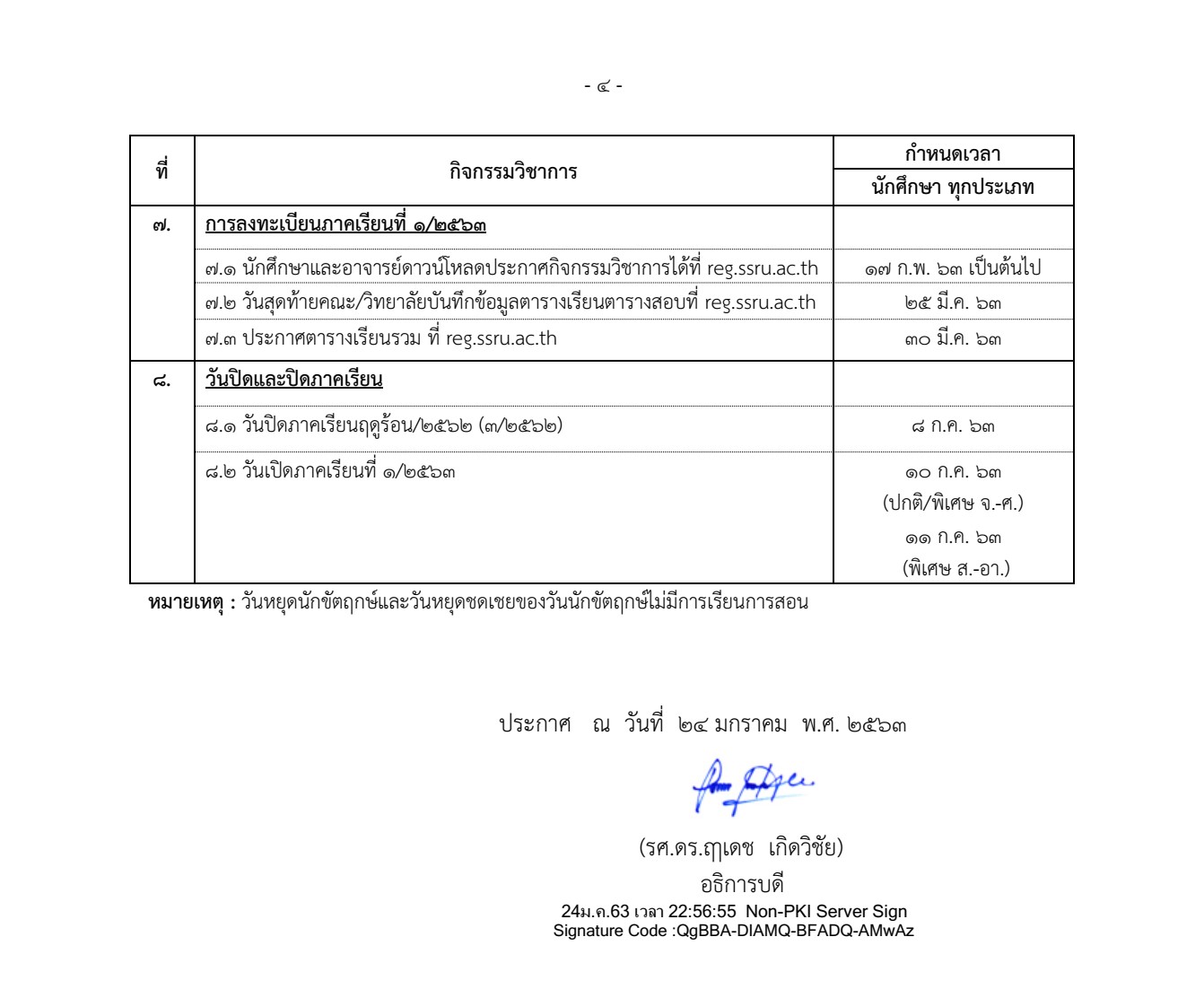 Academic calendar, academic year 2024