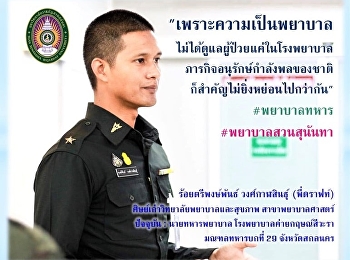 "Because being a nurse doesn't take care of the patients just in the hospital The mission of the nation's personnel conservation is no less important than the other. "Suan Sunandha, an alumnus of the College of Nursing and Health Nursing Science