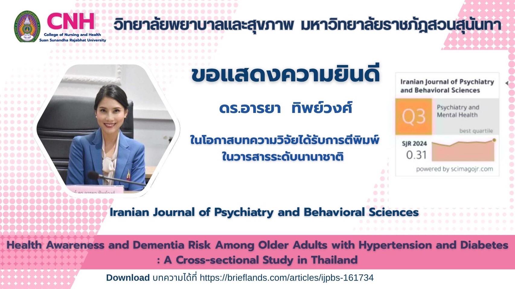 Congratulations to Dr. Araya Thipphawong, Deputy Dean for Planning and Quality Assurance,