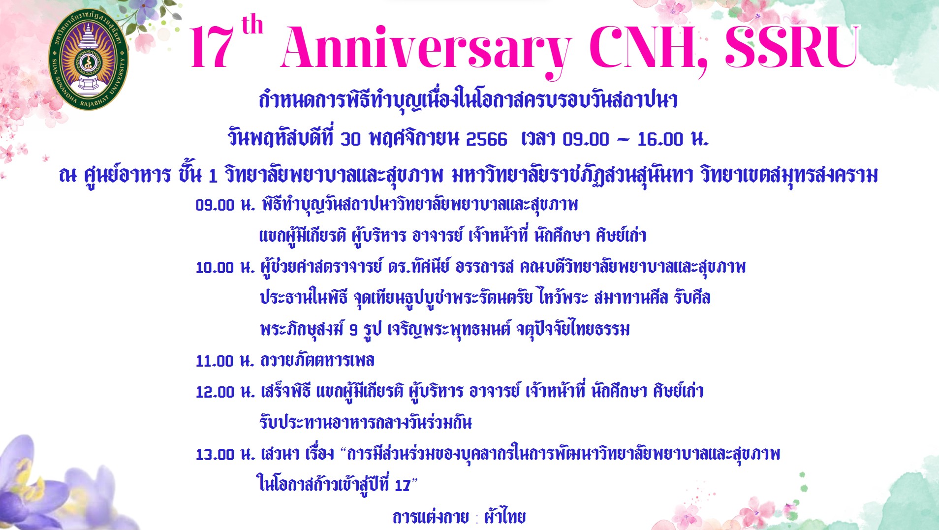 College of Nursing and Health Invitation to attend the merit making ceremony on the occasion of the foundation anniversary