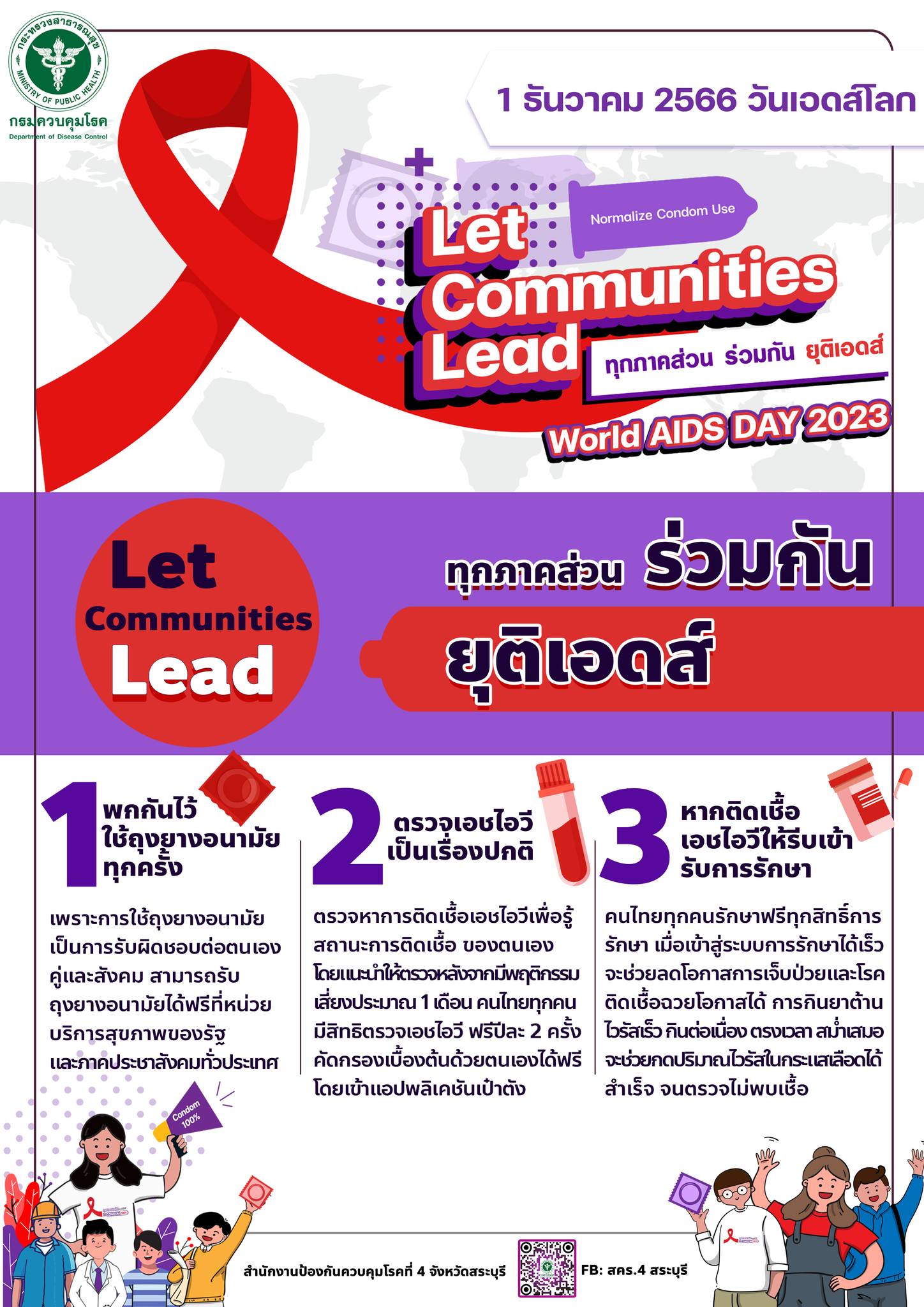 To raise awareness of prevention and be an important part of the drive that will lead to an end to AIDS by 2030, we invite everyone, especially youth, to join the campaign to use condoms as normal. Click here to see Know the Disease by Department of Disease Control /