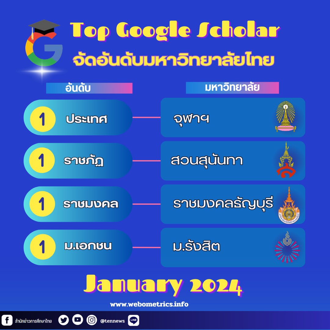 Chula still ranks 1st in Google Scholar JANUARY 2024.