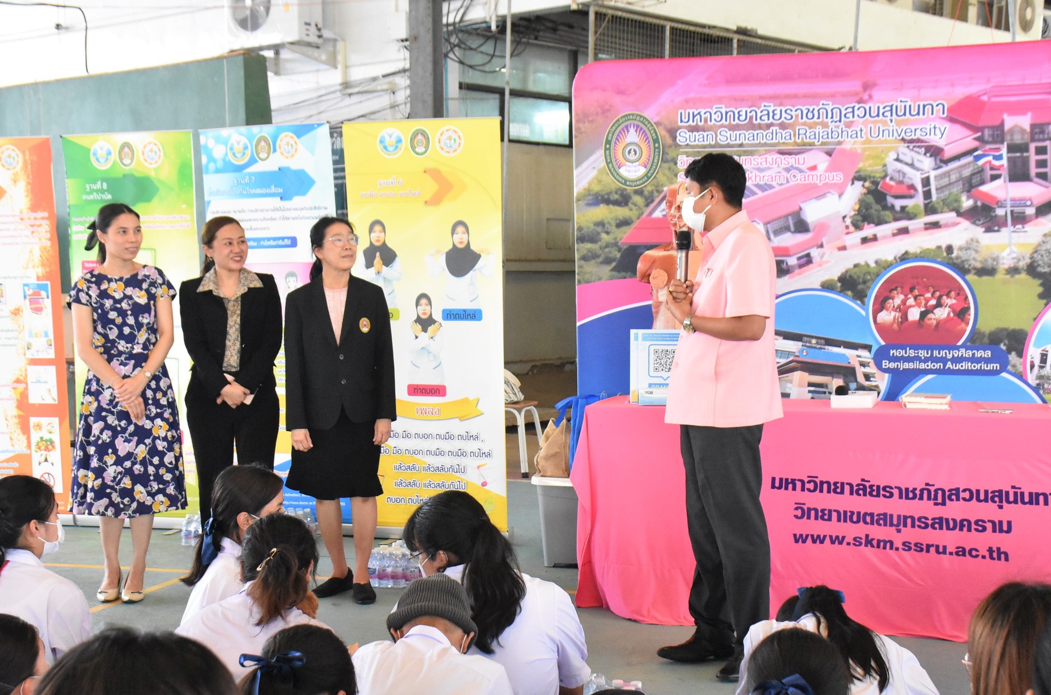 Home > News > News Activities > Associate Dean for Academic Affairs Deputy Dean for Student Affairs Staff of the College of Nursing and Health Participated in the university's public relations at Thavoranukul School Samut Songkhram Province