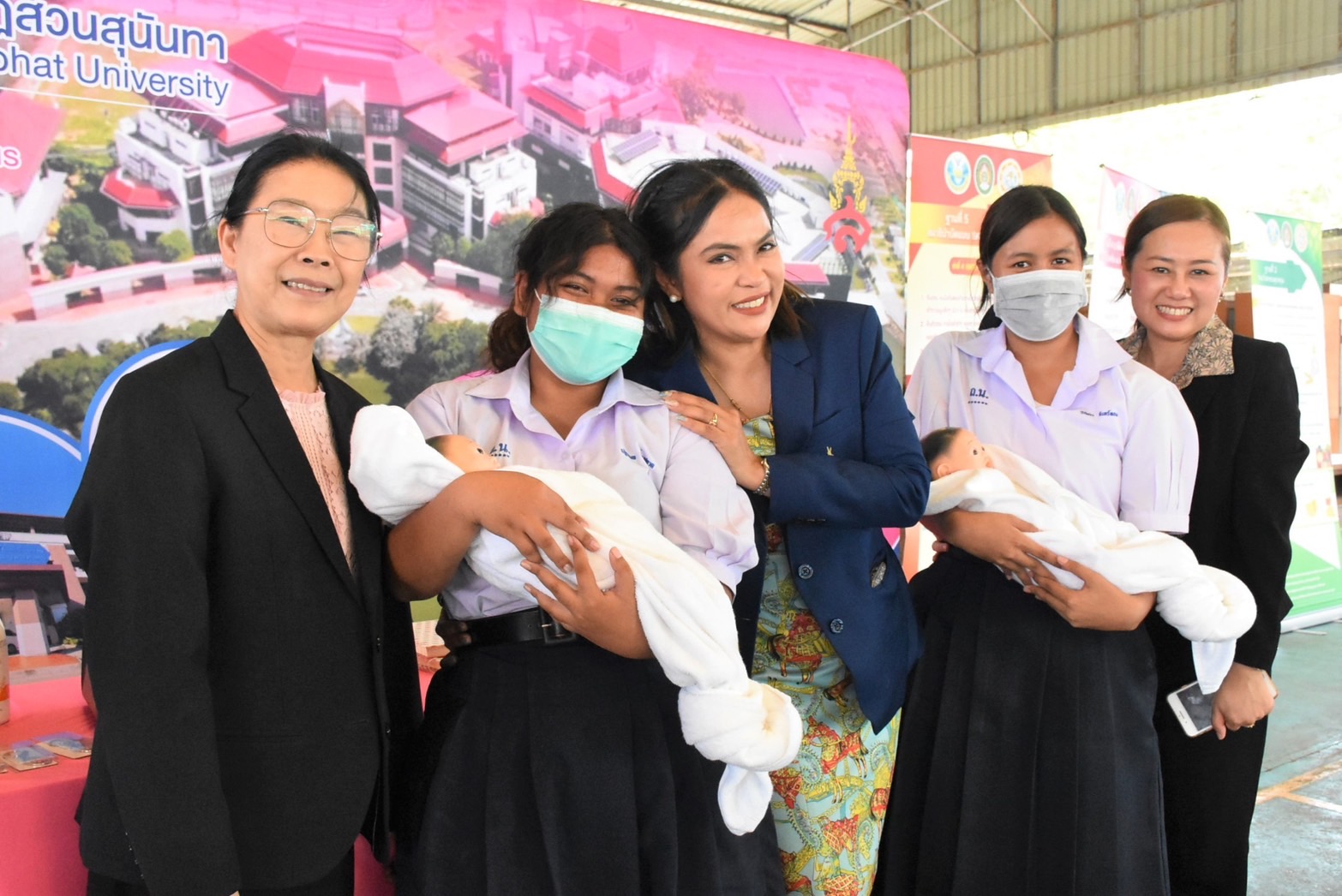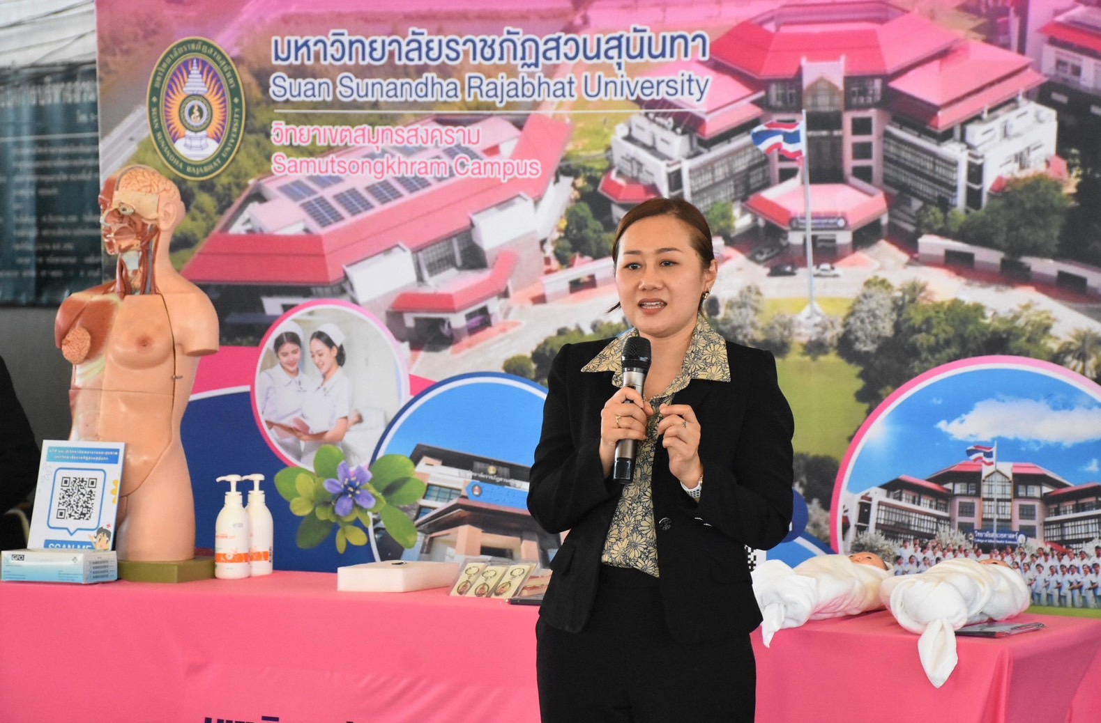 Associate Dean for Academic Affairs Deputy Dean for Student Affairs Staff of the College of Nursing and Health Participated in the university's public relations at Thavoranukul School Samut Songkhram Province