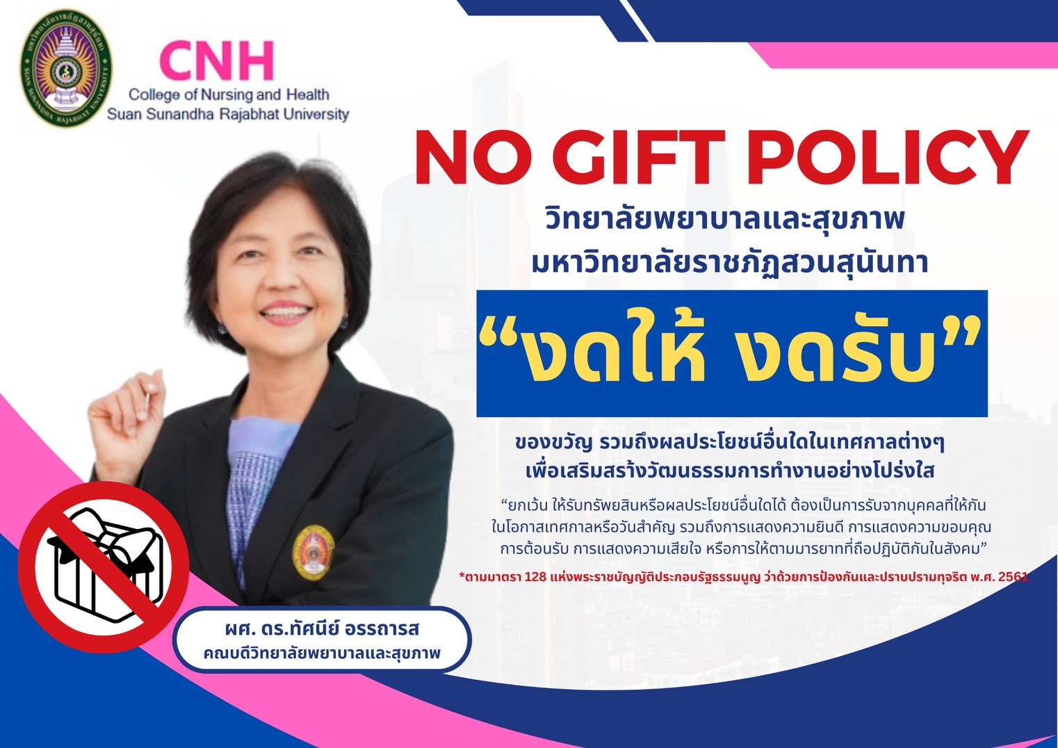 -  รายงานผลตามนโยบาย No Gift Policy (O28)
