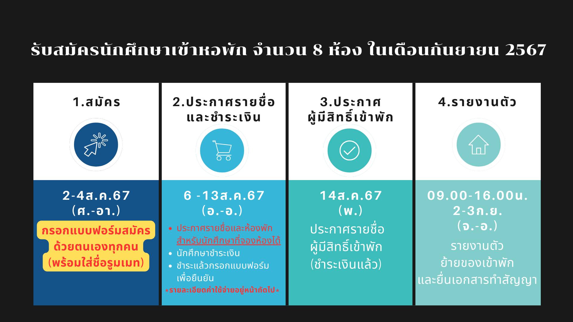 ประกาศ(รับสมัครนักศึกษาเข้าอยู่หอพักระหว่างภาคเรียนที่
