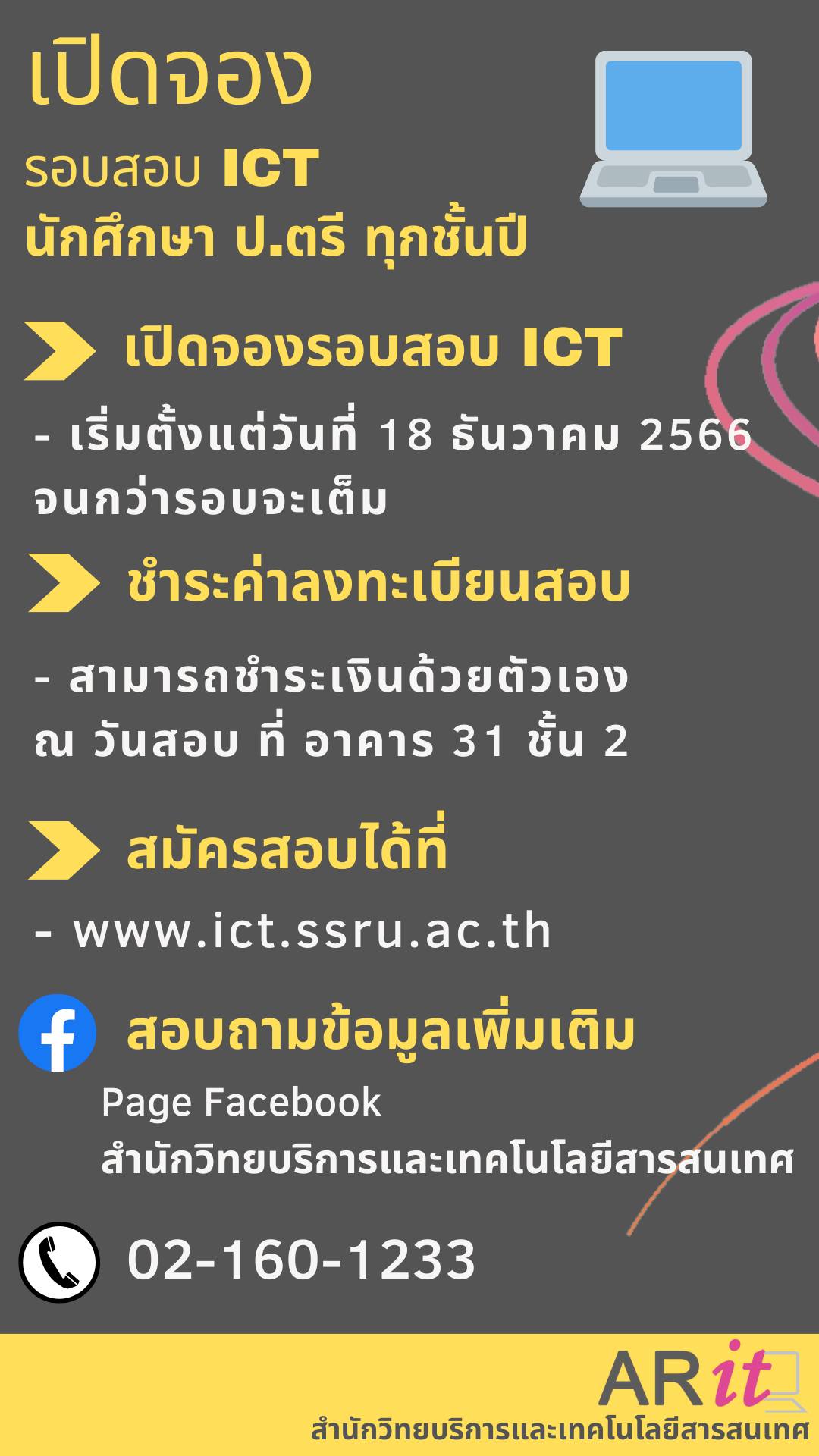 เปิดจองรอบสอบ ICT เดือน มกราคม 2567