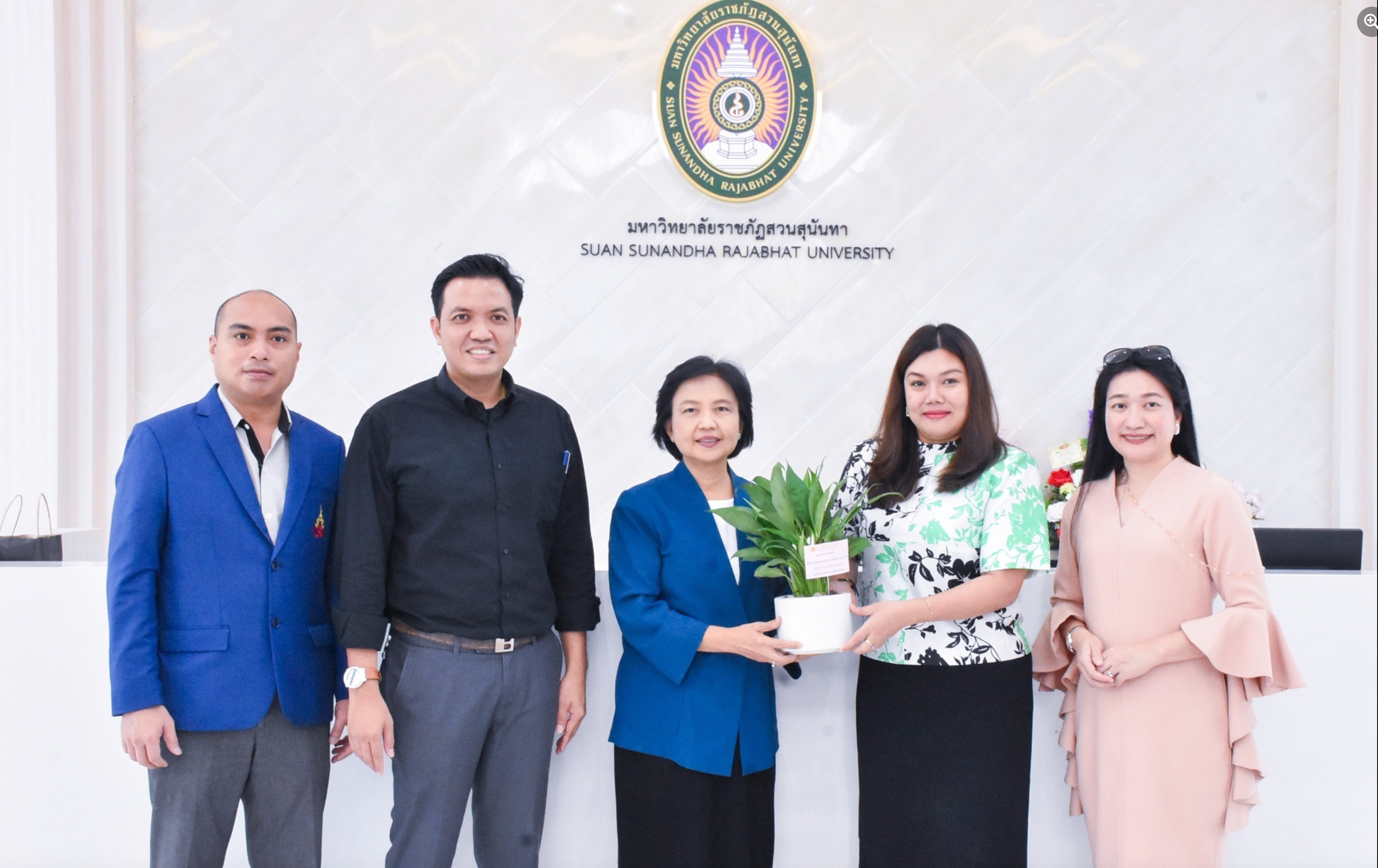 วันที่ 31 ตุลาคม 2566 ผู้ช่วยศาสตราจารย์ ดร.ทัศนีย์ อรรถารส คณบดีวิทยาลัยพยาบาลและสุขภาพ รับมอบดอกไม้แสดงความยินดีจาก ผู้ช่วยศาสตราจารย์ กัญภัส อู่ตะเภา คณบดีวิทยาลัยนิเทศศาสตร์ เนื่องในโอกาสได้รับแต่งตั้งให้ดำรงตำแหน่งคณบดีวิทยาลัยพยาบาลและสุขภาพ มหาวิทยาลัยราชภัฏสวนสุนันทา ณ ห้องรับรอง สำนักงานอธิการบดี มหาวิทยาลัยราชภัฏสวนสุนันทา