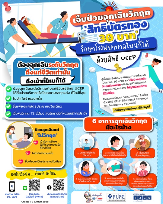 • เจ็บป่วยฉุกเฉินวิกฤติถึงแก่ชีวิต เข้ารักษาได้ที่ รพ.(รัฐ-เอกชน) ที่อยู่ใกล้ด้วยสิทธิ UCEP