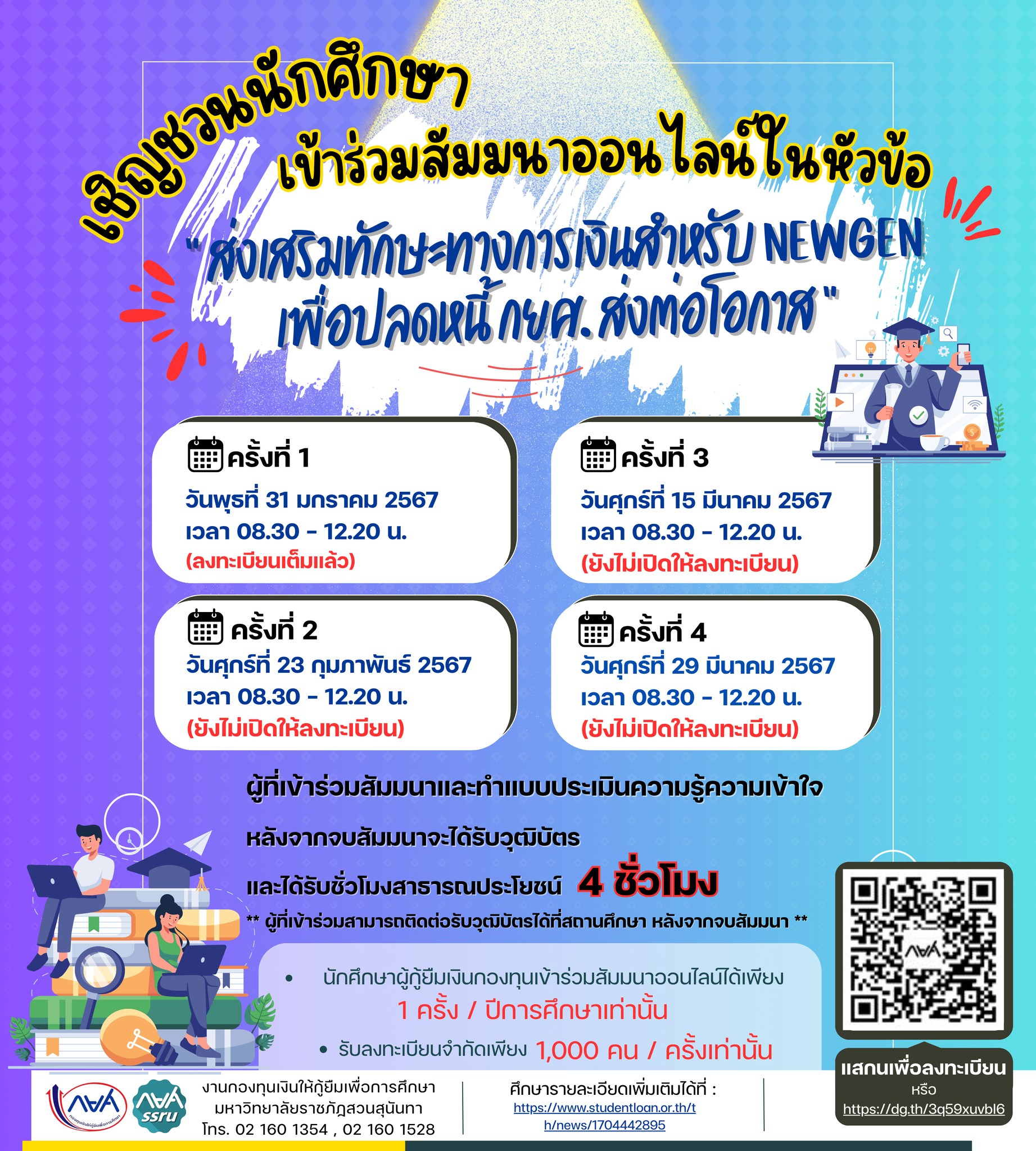 ขอเชิญชวนนักศึกษาผู้กู้ยืมเงินกองทุนฯ ลงทะเบียนเข้าร่วมสัมมนาออนไลน์ หัวข้อ “ ส่งเสริมทักษะทางการเงินสำหรับ NewGen เพื่อปลดหนี้ กยศ. ส่งต่อโอกาส ”