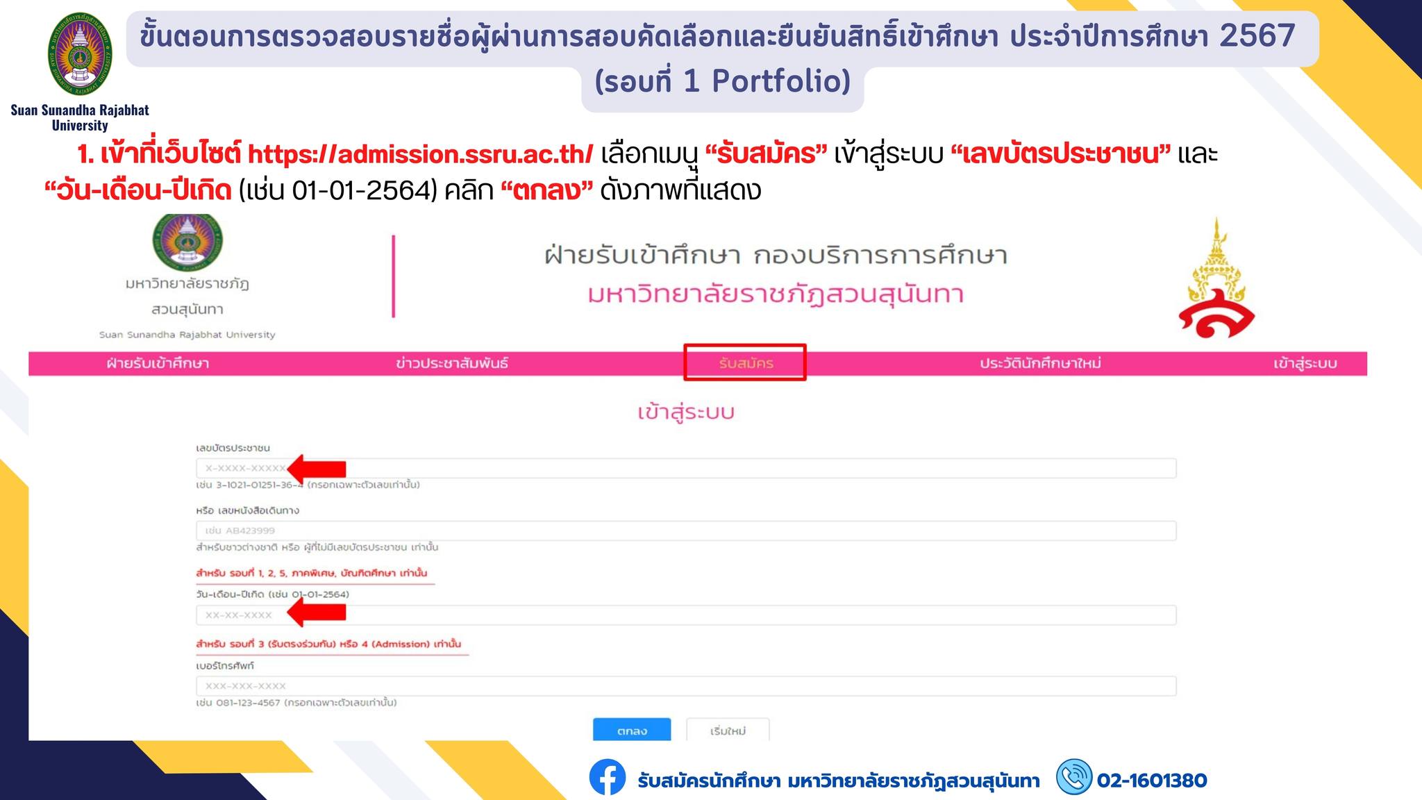 - ขั้นตอนการยืนยันสิทธิ์ในระบบ TCAS คลิกที่นี่ https://cts.ssru.ac.th/File/IS/Announce/Files/13nnauul.pdf