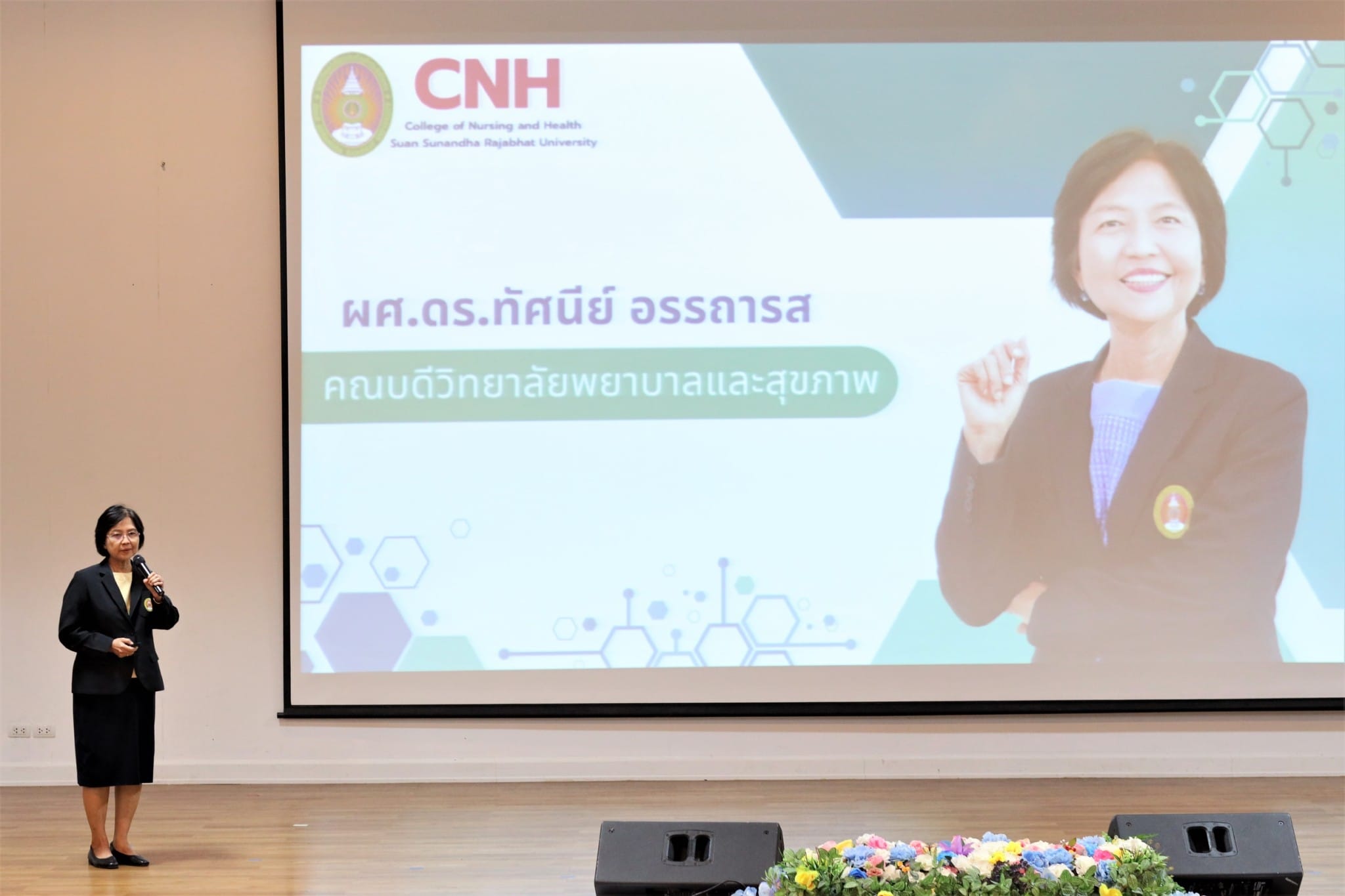 ในการนี้ ผู้ช่วยศาสตราจารย์ ดร.ทัศนีย์ อรรถารส คณบดีวิทยาลัยพยาบาลและสุขภาพ พร้อมด้วย ผู้บริหาร คณาจารย์ และบุคลากรวิทยาลัยพยาบาลและสุขภาพ เข้าร่วมกิจกรรม