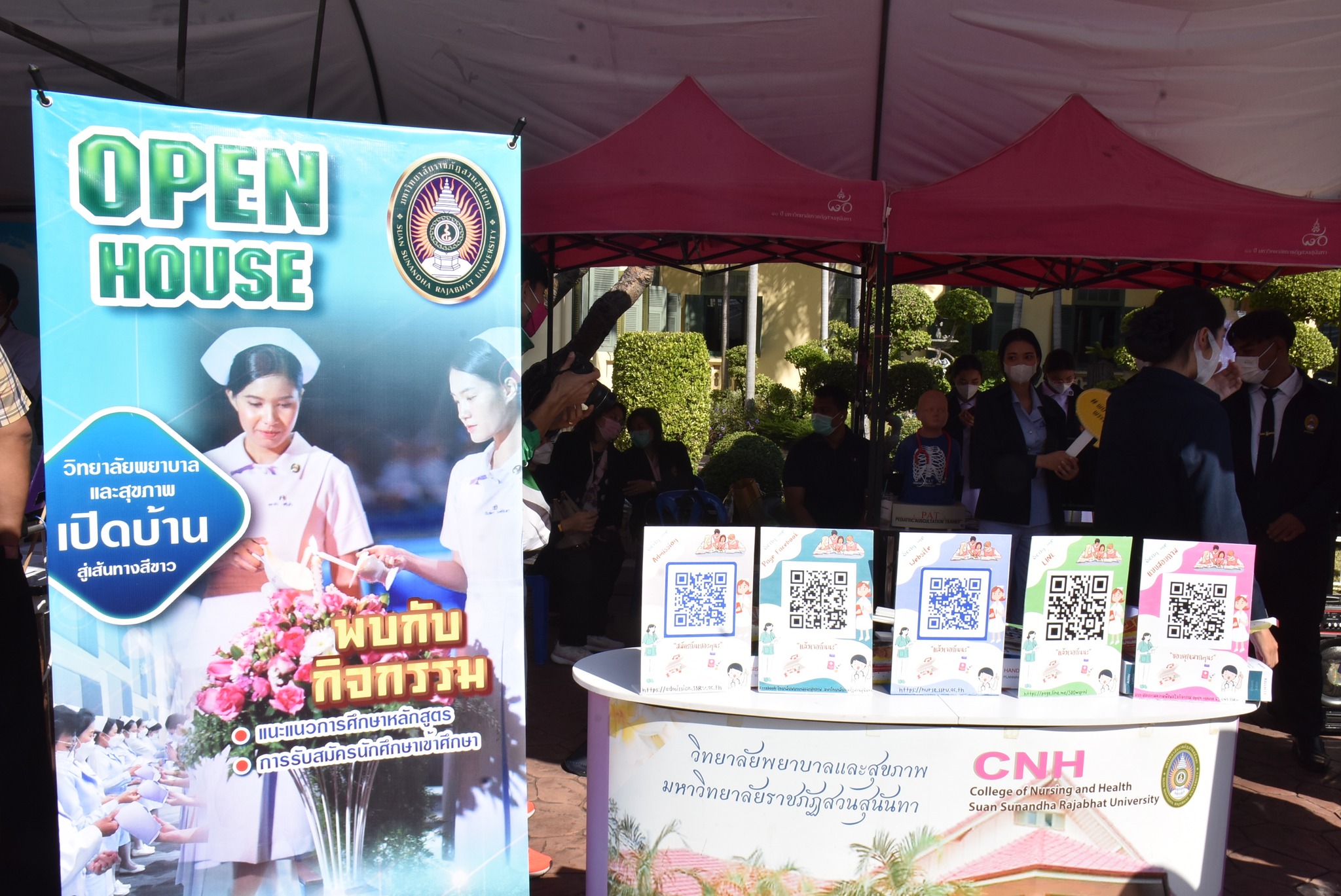 วันที่ 20 ธันวาคม 2565 วิทยาลัยพยาบาลและสุขภาพ เข้าร่วมกิจกรรม “เปิดบ้านสวนสุนันทา SSRU OPEN HOUSE 2022” เรียนเลือกได้…ก้าวไปสู่สาขาอาชีพแห่งอนาคต ณ ลานอเนกประสงค์ มหาวิทยาลัยราชภัฏสวนสุนันทา โดยมี รองศาสตราจารย์ ดร.นันทิยา น้อยจันทร์ รองอธิการบดีฝ่ายวิชาการ มหาวิทยาลัยราชภัฏสวนสุนันทา ได้รับมอบหมายเป็นประธานเปิดกิจกรรม “เปิดบ้านสวนสุนันทา SSRU OPEN HOUSE 2022” เรียนเลือกได้…ก้าวไปสู่สาขาอาชีพแห่งอนาคต กิจกรรมนี้จัดขึ้นในระหว่างวันที่ 20-21 ธันวาคม 2565 โดยกิจกรรมภายในงานประกอบด้วยกิจกรรมวิชาการ การแนะแนวการศึกษาของแต่ละคณะและวิทยาลัย บรรยากาศเป็นไปอย่างคึกคัก นักเรียนสนใจเข้าร่วมกิจกรรมเป็นจำนวนมาก