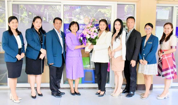 วันที่ 5 กรกฎาคม 2566 ผู้ช่วยศาสตราจารย์ ดร.ทัศนีย์ อรรถารส คณบดีวิทยาลัยพยาบาลและสุขภาพ รับมอบดอกไม้แสดงความยินดีจาก ผู้ช่วยศาสตราจารย์ ดร.วิจิตรา ศรีสอน รักษาราชการแทนคณบดีวิทยาลัยการเมืองและการปกครอง พร้อมด้วยผู้บริหาร คณาจารย์ และเจ้าหน้าที่วิทยาลัยการเมืองและการปกครอง เนื่องในโอกาสได้รับแต่งตั้งให้ดำรงตำแหน่งคณบดีวิทยาลัยพยาบาลและสุขภาพ มหาวิทยาลัยราชภัฏสวนสุนันทา ณ สำนักงานคณบดีวิทยาลัยพยาบาลและสุขภาพ มหาวิทยาลัยราชภัฏสวนสุนันทา