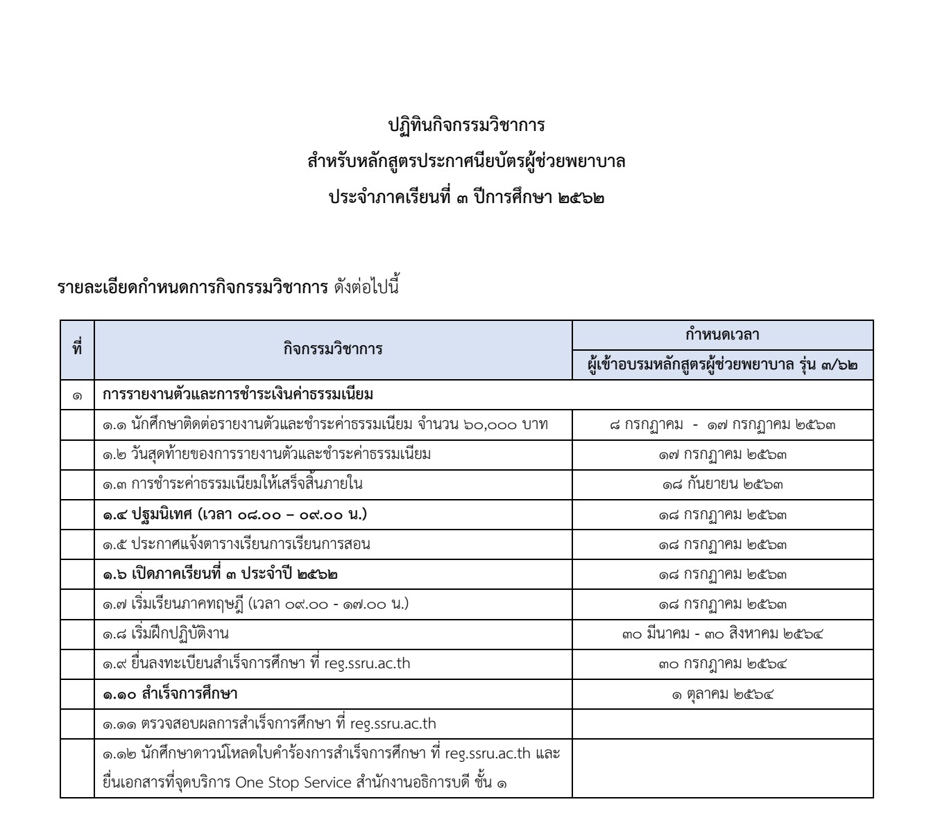 ประกาศรายชื่อผู้มีสิทธิ์เข้าศึกษา หลักสูตรประกาศนียบัตรผู้ช่วยพยาบาล ปีการศึกษา2562 รอบ2