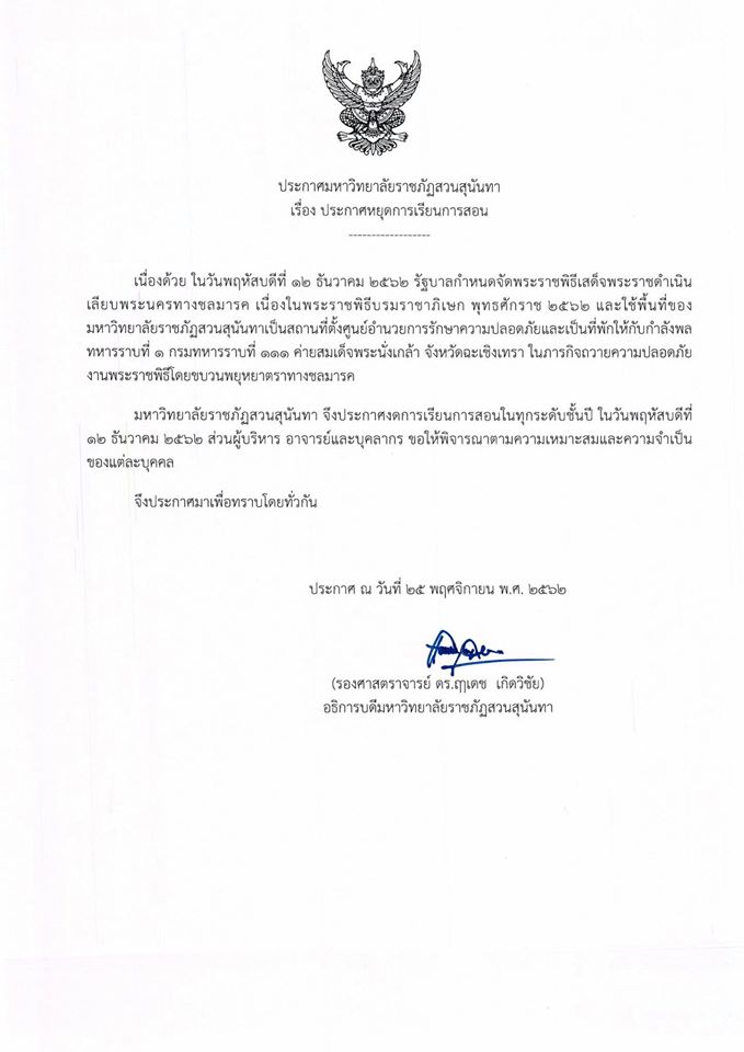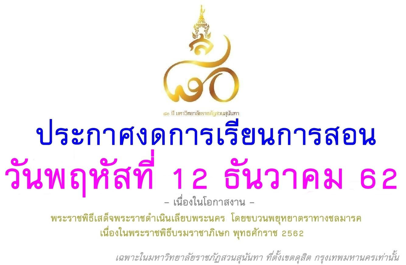 ประกาศงดการเรียนการสอน ในวันที่ 12 ธันวาคม 2562