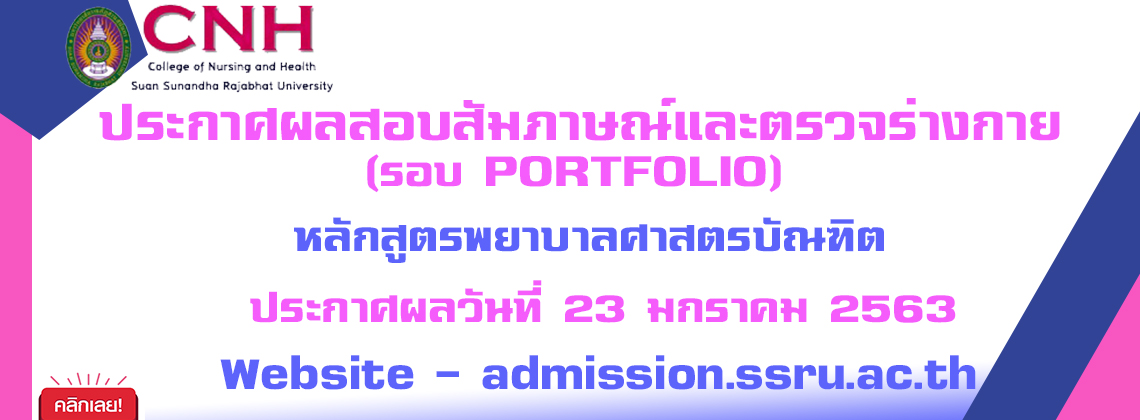 ประกาศผลสอบสัมภาษณ์และตรวจร่างกาย หลักสูตรพยาบาลศาสตรบัณฑิต (รอบ Portfolio)