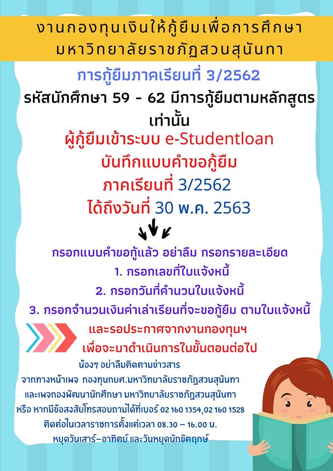 ประกาศจากงานกองทุนเงินให้กู้ยืมเพื่อการศึกษา
