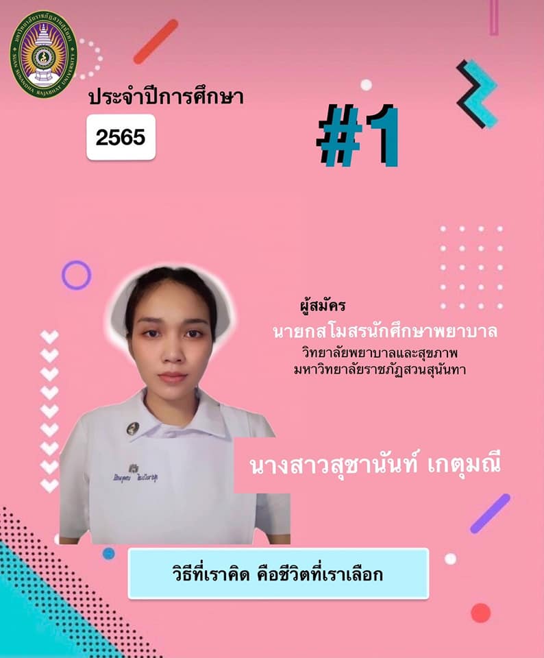 การเลือกตั้งนายกสโมสรนักศึกษา วิทยาลัยพยาบาลและสุขภาพ ประจำปีการศึกษา 2565 ในวันจันทร์ที่ 11 เมษายน 2565 เวลา 08:00 - 14:30 น. แบบออนไลน์