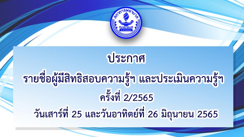 ประกาศรายชื่อผู้มีสิทธิสอบความรู้ฯ และประเมินความรู้ฯ ครั้งที่ 2/2565