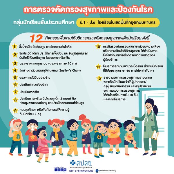 สิทธิประโยชน์สร้างเสริมสุขภาพและป้องกันโรคเชิงรุก ในสถานศึกษา โรงเรียน สำหรับกลุ่มเด็กนักเรียนในพื้นที่กรุงเทพมหานครตามกลุ่มวัย